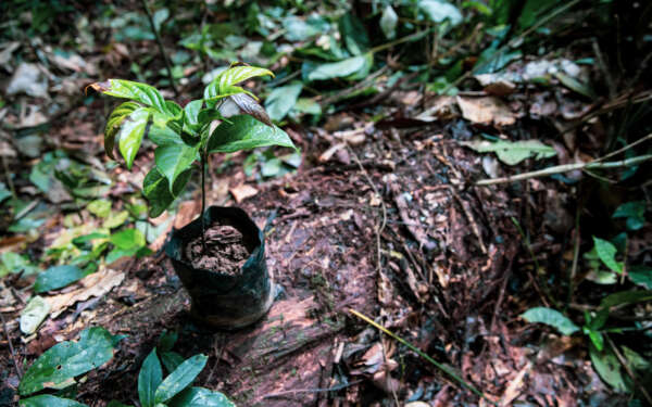 The Ebony Project works with communities to build local nurseries, identify valued tree species, collect seeds, and grow plants. We also provide communities with training on nursery management, and on more advanced tree propagation techniques like marcotting. We maintain a central nursery in Yaoundé, Cameroon to supplement community nurseries and provide improved stock for more advanced propagation techniques. The communities grow the saplings until they are ready to transplant. Before the long rainy season starts, we work with individuals to identify and prepare places to plant the trees. The Ebony Project supports tree planting in fallow fields, secondary or degraded forest, and in agroforestry settings (e.g. with cacao trees). Once the saplings are planted, the individuals are paid annually for each surviving tree for five years, and project staff continue to provide technical support to communities.