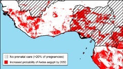 The Zika virus – discovered in Uganda in 1947 – is an arbovirus whose transmission occurs primarily via mosquito vectors, though it is also sexually transmitted. In 2014, Zika infected thousands of people when it spread to the Western hemisphere. In women infected during pregnancy, more than half of all Zika infections result in abnormal fetal outcomes, including microcephaly. Approximately 1 percent of non-pregnant adults infected with Zika develop Guillain-Barré Syndrome, a form of paralysis. Researchers at CBI are modeling the risk of Zika in Africa and predicting how climate change will impact the distribution of its mosquito vectors.